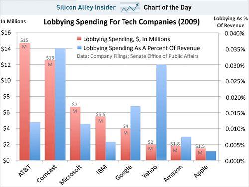 有趣的是,圖表顯示蘋果公司在游說方面的花費最少,可能與它沒有市場壟斷有關(guān)。