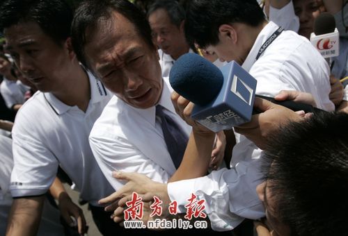最后,隨郭臺銘來到正在富士康召開的“第三屆海峽兩岸心理暨社會學(xué)專家團調(diào)研座談會”現(xiàn)場,向媒體介紹富士康應(yīng)對跳樓事件所采取的四大措施。