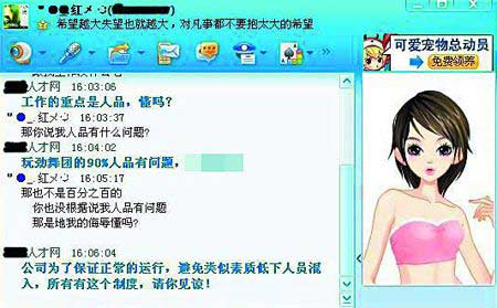 無獨(dú)有偶,網(wǎng)友“xiaoyouzi”發(fā)帖說,他是勁舞團(tuán)(網(wǎng)絡(luò)游戲,玩家喜歡簡稱AU)玩家,沒想到找工作遭遇“歧視門”,企業(yè)招聘要求里規(guī)定“不收有勁舞團(tuán)歷史者”。同時(shí),他在帖子里上傳五張與某人才網(wǎng)人事部領(lǐng)導(dǎo)的QQ聊天記錄。該領(lǐng)導(dǎo)解釋說玩勁舞團(tuán)的玩家90%人品存在問題,為了保證正常運(yùn)行,避免素質(zhì)低下人員混進(jìn),因此才制定該項(xiàng)制度。該領(lǐng)導(dǎo)竟然直言不諱說“玩勁舞團(tuán)的90%屬于人格分裂”。