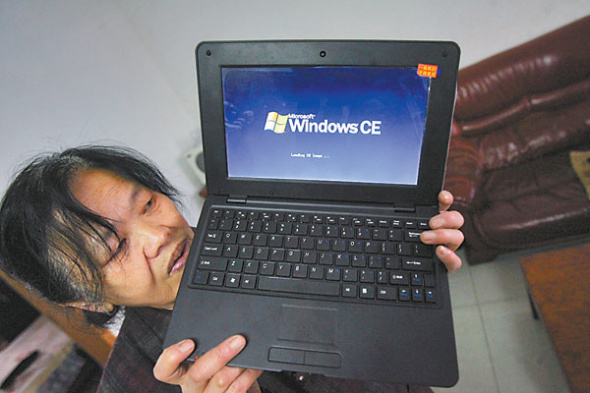 老兩口也不是很懂這個(gè),直到晚上大兒子回家仔細(xì)檢查后才發(fā)現(xiàn),這所謂的超級(jí)上網(wǎng)本,只是一堆塑料簡(jiǎn)易制品,跟小孩子的玩具沒(méi)兩樣。而且這臺(tái)電腦根本打不開(kāi),按了電源鈕后,屏幕上只出現(xiàn)“Windows CE”字樣,就無(wú)任何反應(yīng)了。