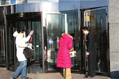 昨天上午,在索愛公司大樓前,一名安保人員守在門口,禁止他人進入。在大廳內(nèi),30多名身穿黃色索愛公司銷售服的人,舉著“還我們權(quán)益”的條幅討薪。