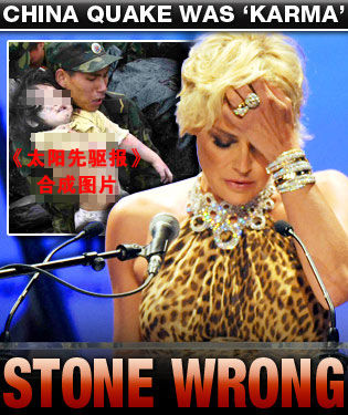 莎朗斯通那些違反人類(lèi)道德的言論,遭遇全民譴責(zé)。西安的一些音像店昨日已將與她有關(guān)的作品下架,其網(wǎng)絡(luò)下載電影也遭到網(wǎng)友抵制。記者還發(fā)現(xiàn),在一些美國(guó)網(wǎng)站上,美國(guó)網(wǎng)友也展開(kāi)了對(duì)她的批判。