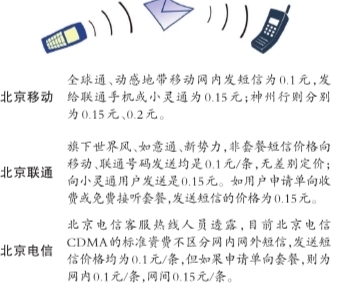 對(duì)于這一政策,北京移動(dòng)、北京聯(lián)通、北京電信表示,將在近期對(duì)旗下短信網(wǎng)內(nèi)、網(wǎng)間資費(fèi)進(jìn)行調(diào)整,以符合工信部的要求。