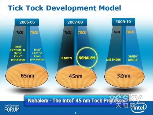 根據(jù)Intel處理器Tick Tock的發(fā)展節(jié)奏:每?jī)赡旮乱淮⒓軜?gòu)、每?jī)赡旮乱淮栊酒a(chǎn)工藝、微架構(gòu)和硅芯片工藝更新交替進(jìn)行,08年是偶數(shù)年,是到了更新微架構(gòu)的年份,新的Nehalem微體系架構(gòu)已于去年10月來(lái)到了廣大消費(fèi)者的面前。