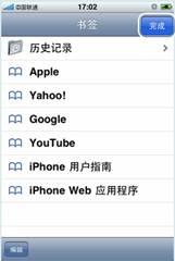 ⑵首次打開(kāi)Safari瀏覽器時(shí),系統(tǒng)會(huì)彈出書(shū)簽菜單,如不想訪(fǎng)問(wèn)蘋(píng)果推薦訪(fǎng)問(wèn)的網(wǎng)站,可直接點(diǎn)擊右上角的“完成”按鈕進(jìn)入空白頁(yè)面(如想查看推薦網(wǎng)站,直接單擊相應(yīng)的書(shū)簽即可)