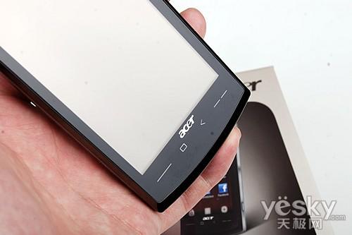 外觀上,ACER neotouch采用了傳統(tǒng)的直板造型設計,配備了一塊3.8英寸WVGA的電阻式觸摸屏幕,分辨率達到了480x800像素,顯示效果清晰細膩。neotouch擁有117.5x63.5x12.85 毫米的三圍體積,重量131.5克,整機設計簡約時尚,握持手感非常不錯。