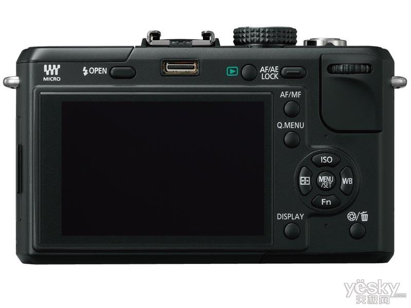 該機(jī)背后是一塊3英寸LCD,其顯示精度也要高于E-P1,約具有46萬像素(E-P1的LCD為23萬像素)。GF1的三圍尺寸和E-P1區(qū)別不大(119×36.3×71mm),但重量卻比E-P1輕了50g,只有285g。另外,GF1的電池型號是與G1及GH1相同的DMW-BLB13型。