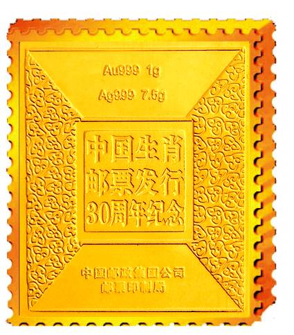 2010年是中國首輪12生肖郵票發(fā)行30周年紀(jì)念,近日,由中國郵政集團(tuán)公司郵票印制局監(jiān)制的第一套“首輪12生肖郵票金磚”正式發(fā)行。此舉結(jié)束了“生肖郵票”和“賀歲金磚”每年都只能各自獨立發(fā)行一枚的歷史,一舉實現(xiàn)了擁有一套生肖藏品,就能同時擁有二個生肖大全套的夢想。