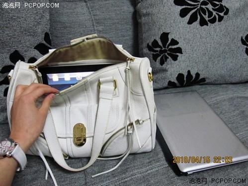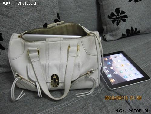 今天拿到iPad,放在包包里和姐妹逛了2小時街,手里提著包包有些重量,但覺得還可以接受,并不是特別沉,但時間長了有點勒手,俗話說“好手難提四兩”。我平時喜歡背大包,可以放很多的東西,經(jīng)常在地鐵里看到有女孩包包里放小說,有次上班高峰時,看到一個短發(fā)MM坐著用EeePC最薄的那款貝殼機帶著耳機看電影,很佩服她的閑情,但也同時發(fā)覺確實有很多志同道合的MM喜歡背大包。有人說iPad可以當(dāng)電子書,地鐵里看電子書的人很多,攜帶是個問題,這里拿自己的包包示范給大家看。