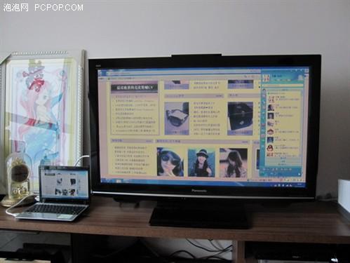 相比較,我的EeePC功能還是更齊全一些,1201N是12英寸的機器,對于視覺的要求,我用HDMI把它和家里46英寸電視連接,因為平時不喜歡看電視,所以家里的松下等離子就變成了上網(wǎng)之用,如下圖所演示,46英寸的顯示器,也是很爽滴!