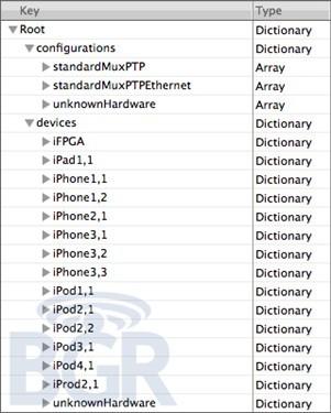 一份內(nèi)部型號的文檔顯示,上一代的iPhone 3GS內(nèi)部型號為“iPhone2.1”因此列表中其后的“iPhone3.1”、“iPhone3.2”、“iPhone3.3”就很有可能是最新一代iPhone手機(jī)的內(nèi)部型號。一共有三款,其中之一已被確定為CDMA版本的iPhone。
