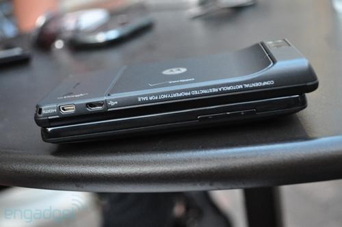 值得注意的是,摩托羅拉Droid X在機身左側不僅安排了一個MicroUSB接口,而且還引入了當前高端智能手機引以為豪的HDMI數(shù)據(jù)接口,無論是圖片、幻燈片還是HD分辨率(720p)的視頻圖像,都可以通過HDMI接口輸出至高清電視設備,從而真正實現(xiàn)了用手機看高清大片的愿望。