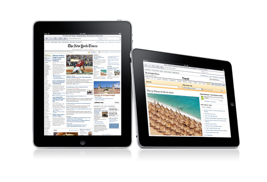 蘋果公司今日凌晨在舊金山發(fā)布了最新平板電腦產(chǎn)品iPad,內(nèi)存空間分別為16GB、32GB和64GB,配備9.7英寸彩色顯示屏,內(nèi)置1GHz芯片,各種型號(hào)的售價(jià)從499美元至829美元不等。圖片來源:蘋果公司官方網(wǎng)站