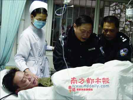 記者趕到廣東省第二中醫(yī)院,鄒本固仍處在昏迷中,正在急救室。輸氧、輸液,將近一個(gè)小時(shí)后,鄒本固終于睜開雙眼。