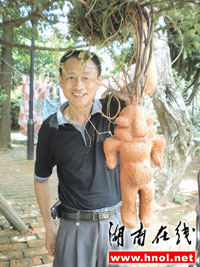 王先生說(shuō),早上9時(shí)許,家門口兩個(gè)小伙子正提著一蔸“人”形植物在吆喝!拔腋u主討價(jià)還價(jià)后,只花了400元買下來(lái)了!