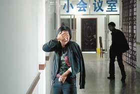 王女士在醫(yī)院的走廊里掩面而泣 記者 闞旋 攝