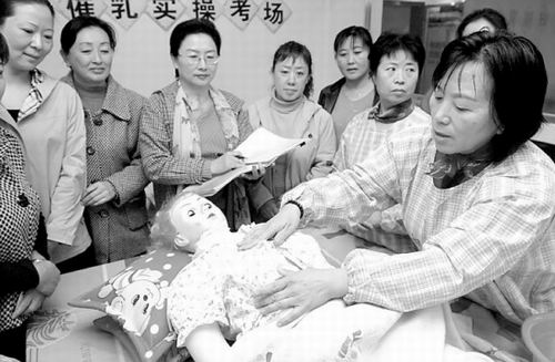 考場外,陪伴自己學(xué)員考試的遼寧省婦聯(lián)家政培訓(xùn)學(xué)校張黎麗介紹說,民間催乳其實(shí)由來已久,那時(shí)大家對(duì)催乳最多的認(rèn)識(shí)就是“揉奶”。但近幾年隨著人們對(duì)母乳喂養(yǎng)的認(rèn)識(shí)逐漸提高,母乳及時(shí)、經(jīng)濟(jì)、方便,尤其是對(duì)嬰兒的成長發(fā)育以及大腦智力的開發(fā)有著決定性的重要作用,這一點(diǎn)已經(jīng)被越來越多的產(chǎn)婦認(rèn)可重視,因此催乳技術(shù)最先在南方一些城市悄然興起。前一段的奶粉風(fēng)波過后,家政市場上對(duì)具有催乳技術(shù)的人員需求進(jìn)一步增大,急于“出乳”的新媽媽們紛紛請(qǐng)其上門,具備催乳技能的家政人員一度邁進(jìn)高薪的家政服務(wù)行業(yè)(目前在沈陽市場上的價(jià)格一次150——250元不等)。
