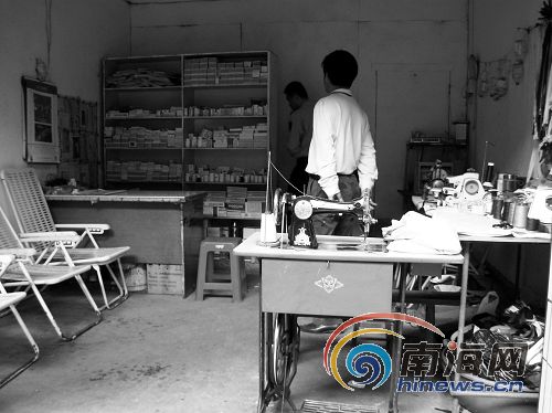 執(zhí)法人員在“張醫(yī)生牙科”的診所看到,這家診所的醫(yī)生沒有執(zhí)業(yè)證書,診所也沒有《醫(yī)療機(jī)構(gòu)執(zhí)行許可證》,屬于非法行醫(yī)。診所的負(fù)責(zé)人說,這家牙店是今年8月開始營(yíng)業(yè)的,沒有多少生意。最后,執(zhí)法人員下發(fā)了行政處罰通知,勒令其停業(yè),并沒收了兩臺(tái)牙科綜合治療機(jī)!叭绻蛔屑(xì)看,我們還以為是家裁縫店呢!”記者跟隨執(zhí)法人員來到了一家裁縫店,裁縫店里還有診所營(yíng)業(yè),還有兩個(gè)病人正躺上椅子上打吊針。記者看到,店門口放著一臺(tái)裁縫機(jī),機(jī)子旁邊擺了一個(gè)桌子,上面擺滿了顏色各異的線,而墻壁一側(cè)掛滿了褲鏈,另一側(cè)墻壁掛滿了空的輸液瓶。