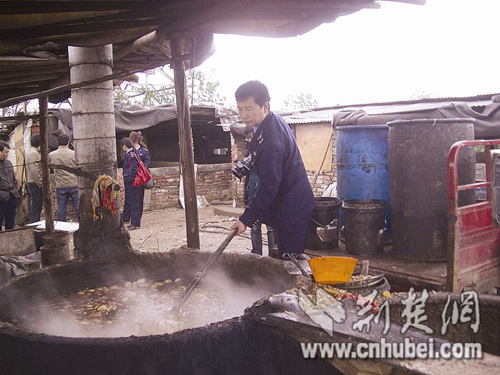 這名男子自稱曾某,來(lái)自紅安縣華河鎮(zhèn)。他交代稱,他從老家來(lái)武漢養(yǎng)了80多頭豬,但嫌養(yǎng)豬太辛苦,就以喂豬為名,以包月100元至400元不等的價(jià)格從吳家山、常青花園一帶的餐館買(mǎi)回殘?jiān)2,高溫處理后濾出表層的油,以每公斤2.6元的價(jià)格,賣(mài)給專(zhuān)門(mén)來(lái)收購(gòu)的人加工成 “地溝油”流入市場(chǎng)。他稱每天僅濾出十多公斤的油,不過(guò),執(zhí)法人員對(duì)這個(gè)數(shù)量表示質(zhì)疑,因?yàn)閮H在查處現(xiàn)場(chǎng)就發(fā)現(xiàn)約750公斤的“地溝油”。