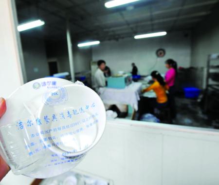 “這些餐具你們自己用不用?”面對(duì)工商執(zhí)法人員的詢問(wèn),一名正在清洗“消毒餐具”的女工沉默半晌后搖了搖頭,小聲地說(shuō):“我不用。”27日中午,接到記者反映的情況后,工商部門(mén)查處了位于福州晉安區(qū)譚橋村的這家消毒餐具廠。記者看到,這家廠的餐具包裝袋上印著“潔爾康餐具消毒配送中心”字樣。