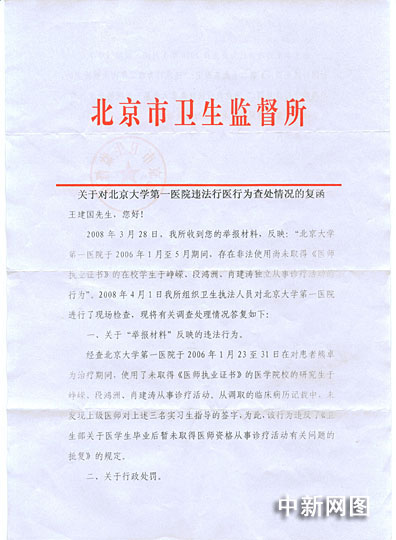 北大第一醫(yī)院回應媒體報道:"非法行醫(yī)"說法不實