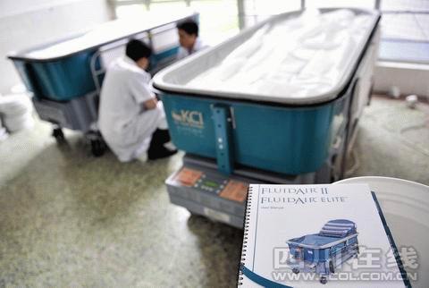 昨日,3張美國原裝進(jìn)口的懸浮床運抵成都軍區(qū)總醫(yī)院。經(jīng)廠家兩名技術(shù)人員調(diào)試了4個多小時,已經(jīng)進(jìn)入凈化程序。最快,今晚兩名傷員就可以睡上這種單價近50萬元的特種床,將極大程度減輕他們的痛苦,并有利于創(chuàng)面愈合。據(jù)了解,當(dāng)燒傷專家提出需要用懸浮床的建議后,成都軍區(qū)總醫(yī)院以最快的速度定購了這批床。