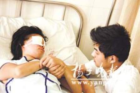 在醫(yī)院眼科搶救病房里,記者昨天下午見到雙眼蒙著紗布、躺在病床上的小雨,她雙手拉住坐在一旁的丈夫不愿松開。據(jù)小雨的丈夫梁偉介紹,他與妻子是在常州打工時認(rèn)識的,兩人于2007年年底結(jié)婚,在結(jié)婚前,妻子就知道他有一個患精神分裂癥的弟弟。
