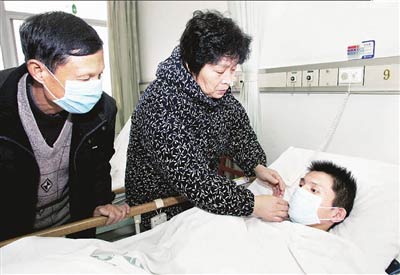 昨日上午9時許,在同濟醫(yī)院外科2號樓,窗外漫天飛雪,陳玉蓉母子所在的病房一片暖意:母親身穿亮綠色中式棉襖,氣色恢復(fù)如常,不時慈愛地看著一旁的兒子。