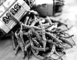 冬令服食冬蟲夏草是一件時(shí)髦事兒,F(xiàn)在的市場價(jià)是48萬元1公斤,價(jià)錢勝黃金。想當(dāng)初,上世紀(jì)80年代,國家的收購價(jià)是1公斤200-300元,那時(shí)醫(yī)院藥房是用大鐵盒裝此藥的。