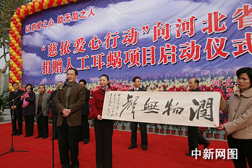 中新網(wǎng)11月10日電 11月10日,由海外愛心人士和畫家張和勇發(fā)起的 “慈依愛心行動”, 向河北省貧困聾兒捐贈人工耳蝸儀式在石家莊舉行,此次受助的10名重度耳聾的聾兒分別來自全省8個地市的貧困家庭,每名聾兒獲贈一套價值16.8萬元人民幣的澳大利亞人工耳蝸,本月將在北京陸續(xù)接受植入手術(shù)。據(jù)悉,此次捐贈是境內(nèi)目前規(guī)模最大的一次向貧困聾兒捐贈人工耳蝸的慈善活動。
