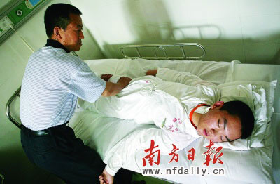 1994年,從兒子在卡車(chē)上摔下癱瘓那一天起,黑龍江伊春市湯旺河區(qū)二清河林場(chǎng)的丁國(guó)福就開(kāi)始了漫長(zhǎng)的奔波。為了讓兒子早日站起來(lái),丁國(guó)福不惜傾家蕩產(chǎn),甚至當(dāng)乞丐。昨日,人稱(chēng)“丁百萬(wàn)”的丁國(guó)福帶著兒子來(lái)到廣州解放軍四二一醫(yī)院求醫(yī)。