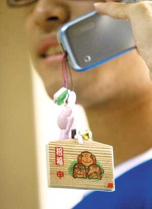 中學(xué)生將“可愛型”安全套掛在手機(jī)上邊四處走。
