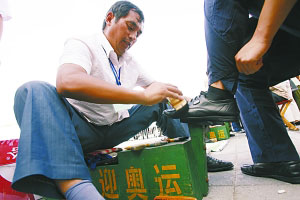 免費(fèi)擦鞋為奧運(yùn)做貢獻(xiàn)