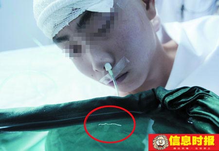 據(jù)小龍的主治醫(yī)生吳杰說,“醫(yī)院對小龍兩年來的影像資料進行了比較,發(fā)現(xiàn)病灶的位置居然發(fā)生了兩厘米多長的移動。什么東西能夠在人體內(nèi)‘位移'這么長距離呢?最大的可能應是寄生蟲了!敝,醫(yī)生通過開顱手術(shù),果然從小龍的腦袋里“釣”出一條雖斷裂成三段,但主要部分依然活生生的寄生蟲——裂頭蚴。據(jù)小龍父親介紹,由于迷信多吃當?shù)厣嚼锏囊吧嗤苣軌驈娊∩眢w,小龍父親從小龍3歲時就開始為其捕捉青蛙食用,夏季幾乎天天都能吃上一餐,一直到其六歲后方才減少捕食。