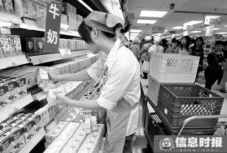 記者還留意到,貨架上的液態(tài)奶絕大多數(shù)都是9月14日之后生產(chǎn)的產(chǎn)品。在好又多超市,記者看到,250毫升裝的蒙牛純牛奶包裝盒上顯示的生產(chǎn)日期為9月15日,與“下架奶”僅隔一天時(shí)間生產(chǎn)。在家樂福超市,上周還被豆奶產(chǎn)品占據(jù)3/4地盤的牛奶貨架上,昨日的牛奶地盤終于有所擴(kuò)大,特倫蘇、伊利、蒙牛、雀巢的純牛奶陸續(xù)回歸市場(chǎng),其生產(chǎn)日期則均顯示為9月底至10月初。