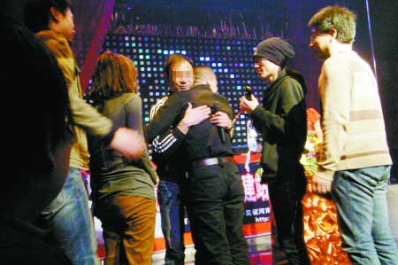 大家上臺(tái)和感染者擁抱 記者 丁潔/攝
