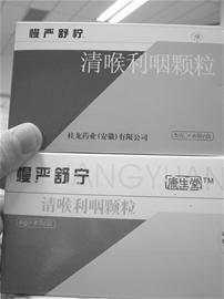 記者接過藥仔細(xì)一看,盒子上寫的卻是“慢嚴(yán)舒寧”清喉利咽顆粒,“檸”字變成了“寧”,不仔細(xì)還真分辨不出。
