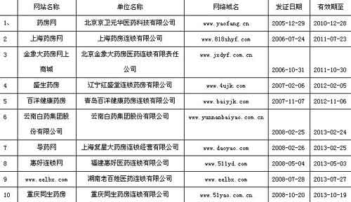 中新網(wǎng)12月8日電 今天上午,國家藥監(jiān)局新聞發(fā)言人顏江瑛通報(bào)了截止到2008年12月8日,國家藥監(jiān)局批準(zhǔn)的向個(gè)人提供非處方藥品的10家互聯(lián)網(wǎng)藥品交易網(wǎng)站。(據(jù)中國網(wǎng)文字直播整理)