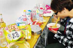 學生小江寧愿在宿舍吃泡面也不想去飯?zhí)贸燥垺P畔r報記者 葉偉報 攝