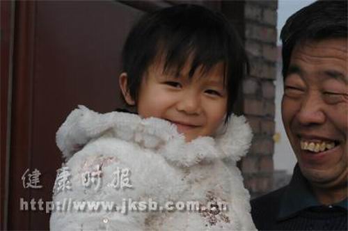 2月5日上午,健康時報記者專程趕到孝義市郊區(qū)小杰的家。小杰正在院子里玩耍。她看到跟記者一起來的劉克戰(zhàn),扭頭就跑,鉆進了姥爺的懷抱。