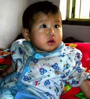 10月21日,記者冒雨與衡水復(fù)明眼科醫(yī)院的醫(yī)護(hù)人員一行來(lái)到了故城縣武官寨鎮(zhèn)叩莊村,小田盈的爺爺、奶奶早就等在門(mén)口了。小田盈在爸爸的懷里起勁地吮吸著奶瓶。記者看到田盈的上嘴唇左部一直到左鼻孔有一道長(zhǎng)長(zhǎng)的疤痕。右前臂明顯彎曲,摸上去有硬塊。俗話說(shuō)“三翻六坐八爬爬”,目前小田盈都9個(gè)半月了,別說(shuō)爬了,連坐都坐不起來(lái)。