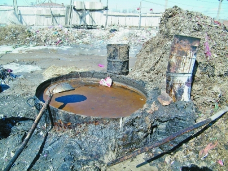 大慶第二制藥廠西側(cè)一偏僻的民宅內(nèi),一個用磚壘起的池子內(nèi),裝滿尚未加工的地溝油,剛一走近,惡臭撲鼻。