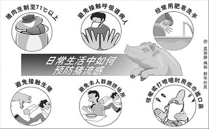 據(jù)介紹,目前普通流感疫苗已經(jīng)推廣使用,禽流感疫苗正在加緊研制的過程中。而新近爆發(fā)的豬流感還沒有研制出有效的疫苗。因此專家建議在目前還沒有有效預防疫苗的情況下,群眾要通過自覺加強個人衛(wèi)生,預防感染豬流感病毒。