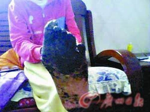 唐麗艷大半個左腳如同“焦炭”。