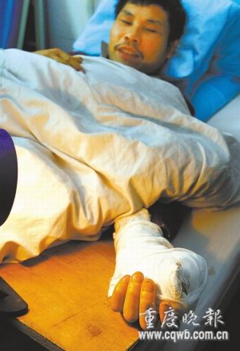 一家人歡歡喜喜殺肥豬過(guò)年,不料,被捅了一刀的大肥豬突然牢牢將殺豬人的手指咬在嘴里。前天(12月24日)下午,躺在病床上的渝北區(qū)農(nóng)民張?zhí)熨F哭笑不得,雖然手指已接回,但5000多元的醫(yī)療費(fèi)已遠(yuǎn)遠(yuǎn)超過(guò)宰殺年豬的價(jià)值。
