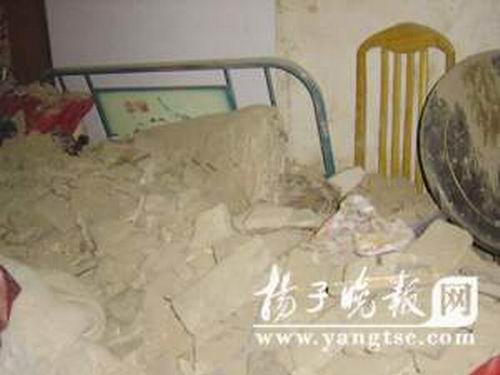 昨晨5點(diǎn)10分左右,南京秦淮區(qū)箍桶巷31號(hào)的一所民國(guó)建筑的墻壁突然坍塌,將正在床上睡覺(jué)的方大媽從頭埋到腳,但因?yàn)榉酱髬岊^部是朝著倒塌的墻壁方向,亂石沒(méi)有砸到頭,而且身上蓋著兩床厚厚的棉被,所幸身體并無(wú)大礙。