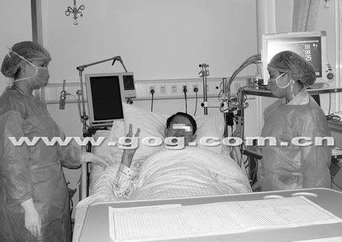 “由于不能開口說話,他在書寫板上給寫了‘醫(yī)生我能活嗎?’幾個字,”日夜在周某身邊看護的護士長張桂屏回憶說。當時在場的醫(yī)生護士都安慰他:“能活,北京的專家也在,全國人民都在救你,你要堅強!甭牭结t(yī)生們這樣說,周某當時感動得熱淚盈眶。