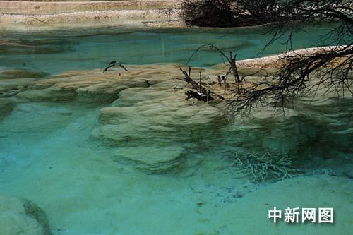 整個山谷幾乎全被乳黃色的碳酸鈣質(zhì)覆蓋,從高處看去,宛若一條從岷山雪峰飛騰而下的黃龍,景區(qū)由此得名。一層層的碳酸鈣形成層層疊疊的梯狀湖泊、池沼,水色因水底沉積物和山色的千變?nèi)f化,而呈黃、綠、淺藍(lán)、蔚藍(lán)等顏色,是名副其實的“人間瑤池”。