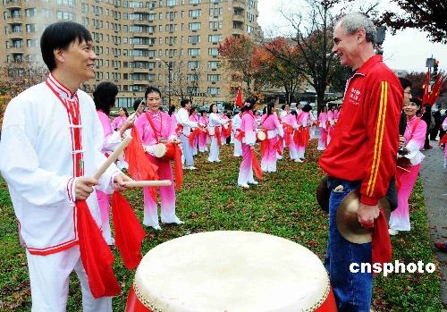 一位來自當(dāng)?shù)氐摹把笕恕北葼枺ㄓ遥┮呀?jīng)多次率領(lǐng)這支鑼鼓隊(duì)參加中國文化節(jié)日的活動(dòng)。