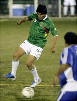 玻利維亞總統(tǒng)莫拉萊斯是足球迷,長(zhǎng)期堅(jiān)持踢球。